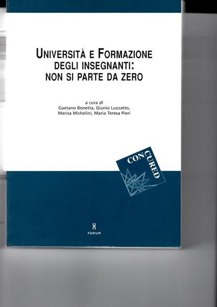 Università e Formazione degli insegnanti: non si parte da zero. A cura di Gaetano Bonetta, Giunio Luzzatto, Marisa Michelini, Maria Teresa Pieri.