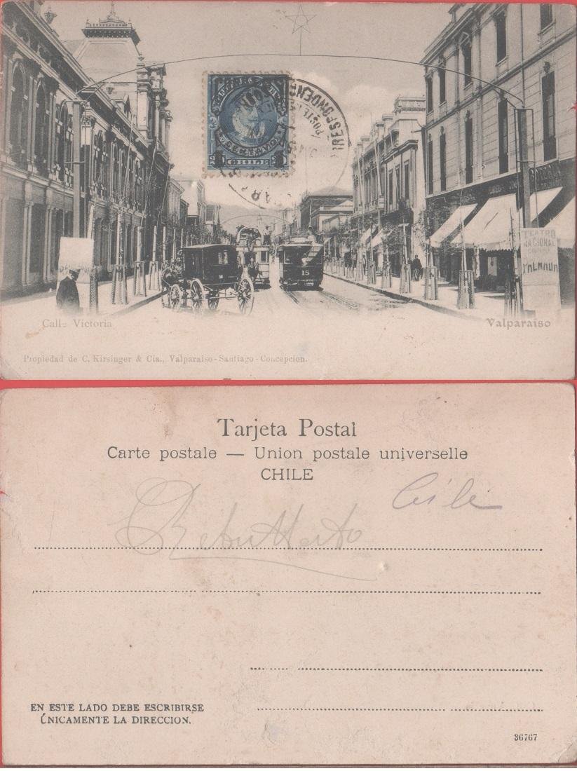 Valparaiso (Cile). Calle Victoria . Viaggiata 1905. Carrozze, tram