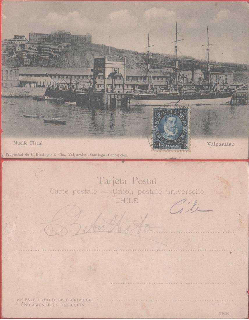 Valparaiso (Cile). Muelle fiscal . Viaggiata 1905. Navi a vela