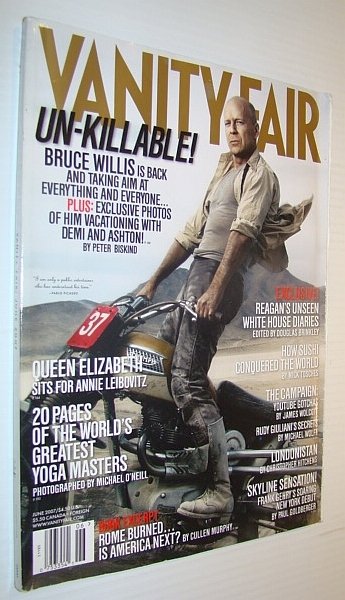 • Vanity Fair Magazine, June 2007 - Bruce Willis Cover Demi Moore Ashton David Steinberg, Die Hard Bruce Willis is back, Queen Elizabeth sits for Annie Leibovitz, 20 pages of the world's greatest yoga masters, Reagan's unseen White House diaries, How Sushi Conquiered the World, Campaign YouTube Gotchas, Rudy Giuliani's secrets, Londonistan, Skyline Sensation - Frank Gehry's soaring New York Debut Kutcher, Magazine Back Issues