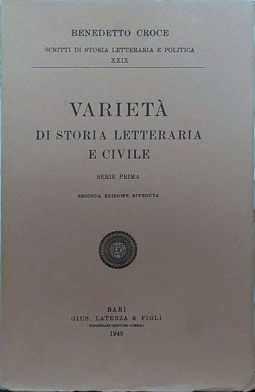 VARIETA' DI STORIA LETTERARIA E CIVILE. - Serie Prima. Scritti di storia letteraria e politica: volume XXIX.