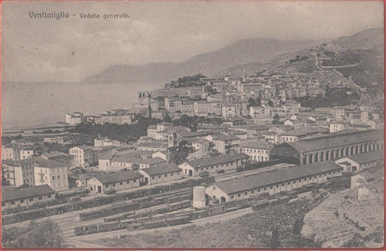 Ventimiglia (IM). Veduta generale. Originale d'epoca. Stazione, treni