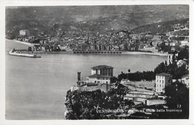 Ventimiglia. Mentone vista dalla frontiera. Non viaggiata, originale d'epoca