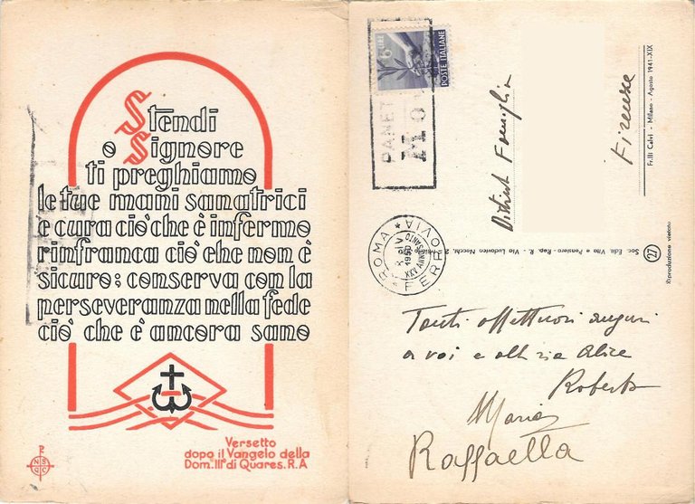 Verso Vangelo. Timbro Anno Santo 1950. Viaggiata 1950