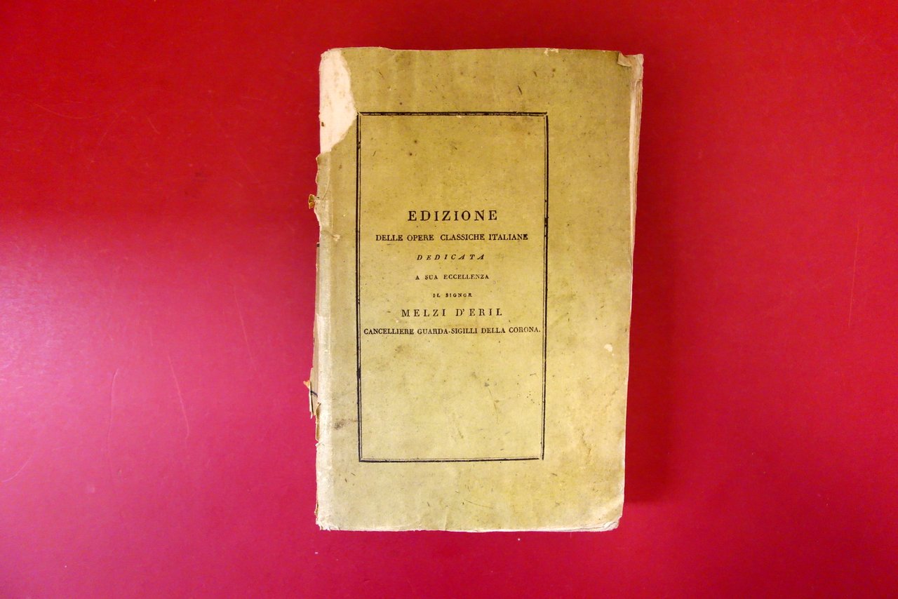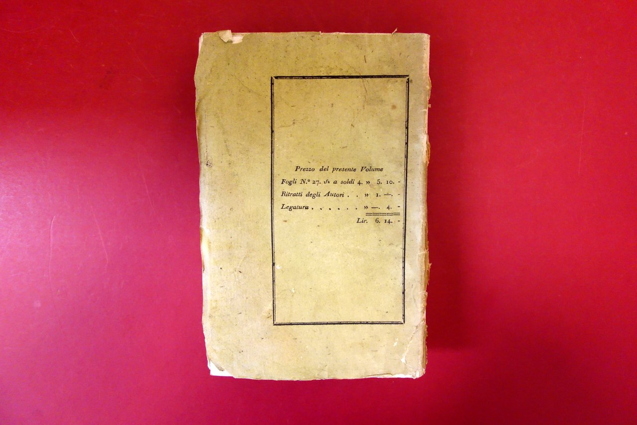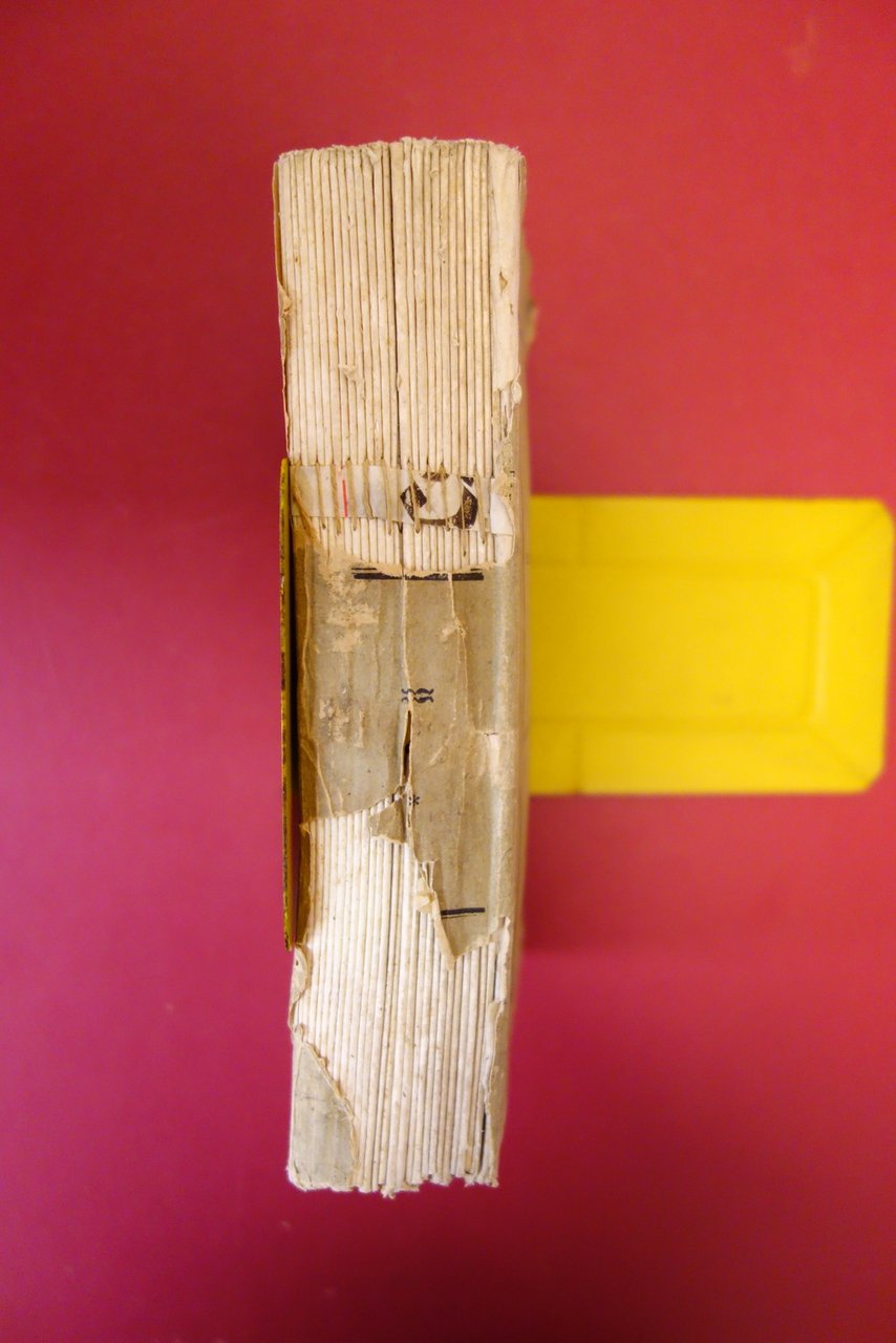 Complessivamente in buone condizioni con tracce d'uso e leggeri segni del tempo; dorso in larga parte mancante con conseguente leggero allentamento delle cuciture, ma esemplare complessivamente compatto; leggero foxing; cartoncino ed. con alcuni leggeri - lievi aloni e qualche leggera marginale ombra di gora, le quali coinvolgono anche i margini di alcune pagine senza provocare danni al testo.