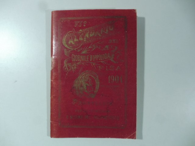In 24 (cm 9 x 13), pp. 50 + (2). Brossura editoriale. Comprende: Calendario delle corse al galoppo; Calendario delle corse al trotto; Igiene del cavallo alla scuderiea. Istruzioni pel palafrreniere; Calendario lunario 1901.