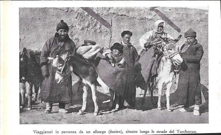 Viaggiatori in partenza lungo le strade del Turchestan. Stampa 1934