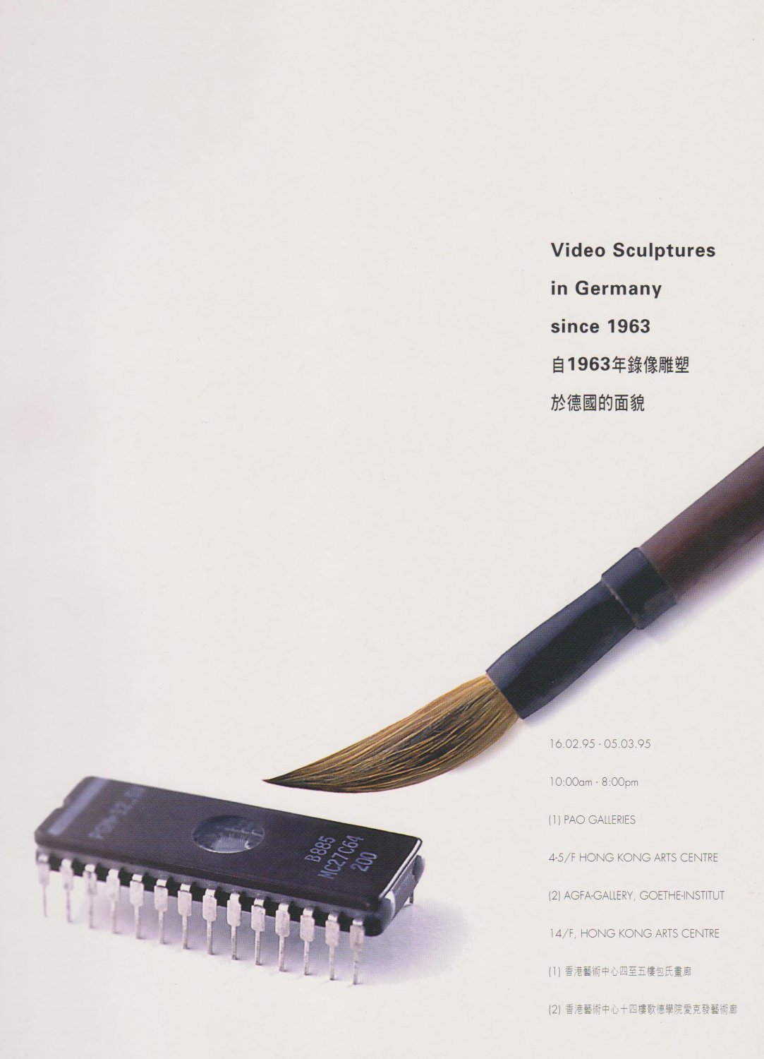 1st tome with numerous coloured illustrations, text in German. 2nd tome contains same text translated to Chinese. 3rd tome "Art and Electronics" in English and Chinese, with non-German artists and foreword by Uwe Nitschke. With 15 original photographs with caption. Hong Kong Arts Festival 95, 16.02.95 - 05.03.95, Pao Galleries, Agfa Gallery, Goethe Institut: Hong Kong Arts Centre. ACHTUNG! Dieses Buch kann wegen seines Gewichts oder seiner Größe nur als PAKET verschickt werden. Innerhalb Deutschlands 5,80 Euro. (Portokosten ins Ausland bitte erfragen.) / ATTENTION! Due to its weight or size this book can only be sent as a PARCEL. Within Germany 5,80 Euro (for shipment abroad please ask).