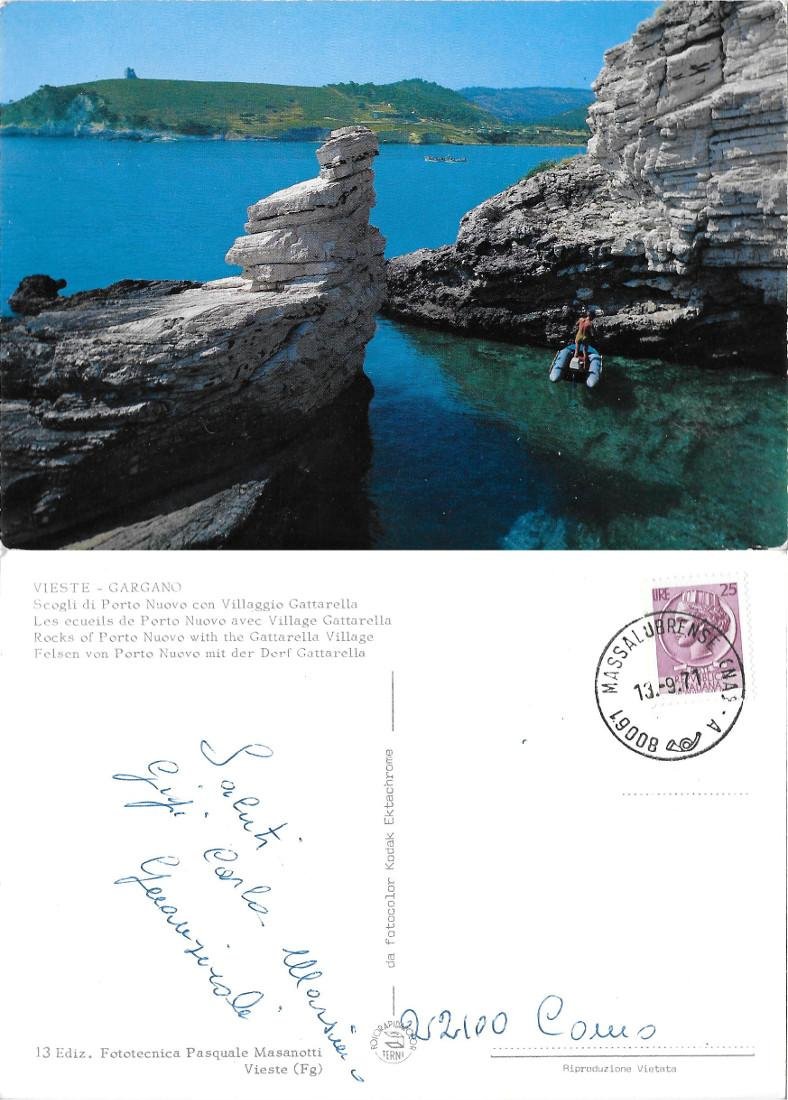 Vieste. Scogli di Porto Nuovo con Villaggio Gattarella. Viaggiata 1971