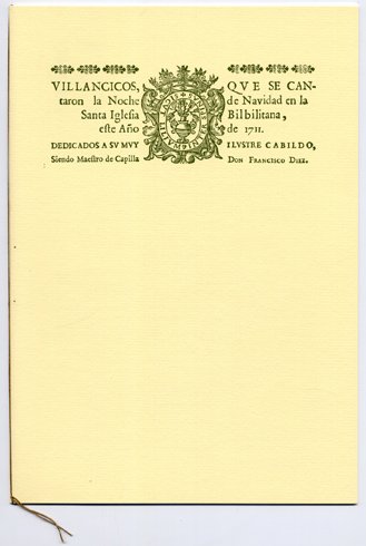 Villancicos que se cantaron la noche de Navidad en la Santa Iglesia Bilbilitana este año de 1711. Dedicado a su Muy Ilustre Cabildo, siendo Maestro de Capilla Don Francisco Diez. Reproducción facsímil del impreso en Zaragoza, Diego de Larumbe, 1711. Introducción de Angel San Vicente.