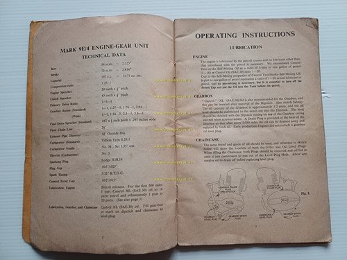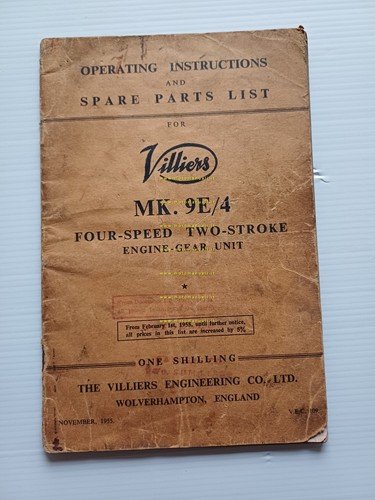 Villiers motore MK 9E/4 200 1955 manuale uso +cat. ricambi originale