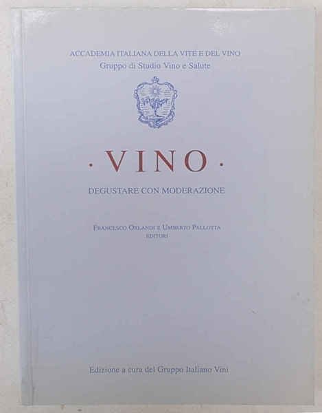 In 8° (cm. 24 x 17); pagg. 250; leggera carton. originale VG-. ** Realizzato dal Gruppo di Studio vino e Salute della Accademia Italiana della Vite e del Vino. "Capitoli scritti da esperti prestigiosi. volumetto innovativo per il solo semplice allineamento di competenze diverse, dalla biologia alla medicina all'epidemiologia alla informazione sanitaria, fino alla viticoltura ed enologia."