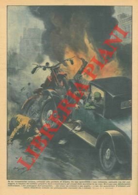 Violentissimo scontro, alla periferia di Londra, fra una motocicletta e una vetturetta: la benzina dei serbatoi prendeva fuoco e trasformava gli avanzi delle macchine in un rogo.