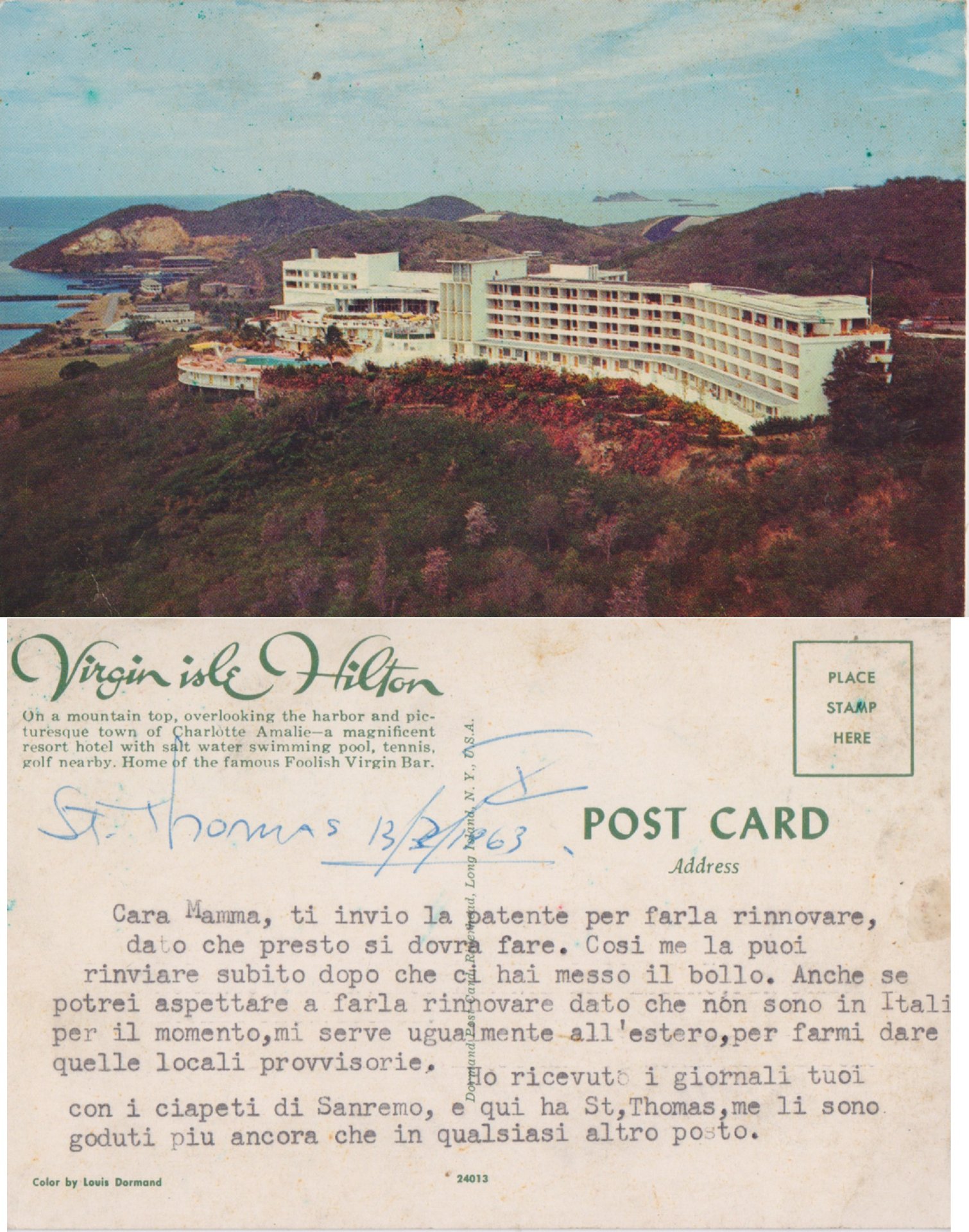 Virgin isle Hilton. St Thomas Charlotte. Scritta e datata 1963