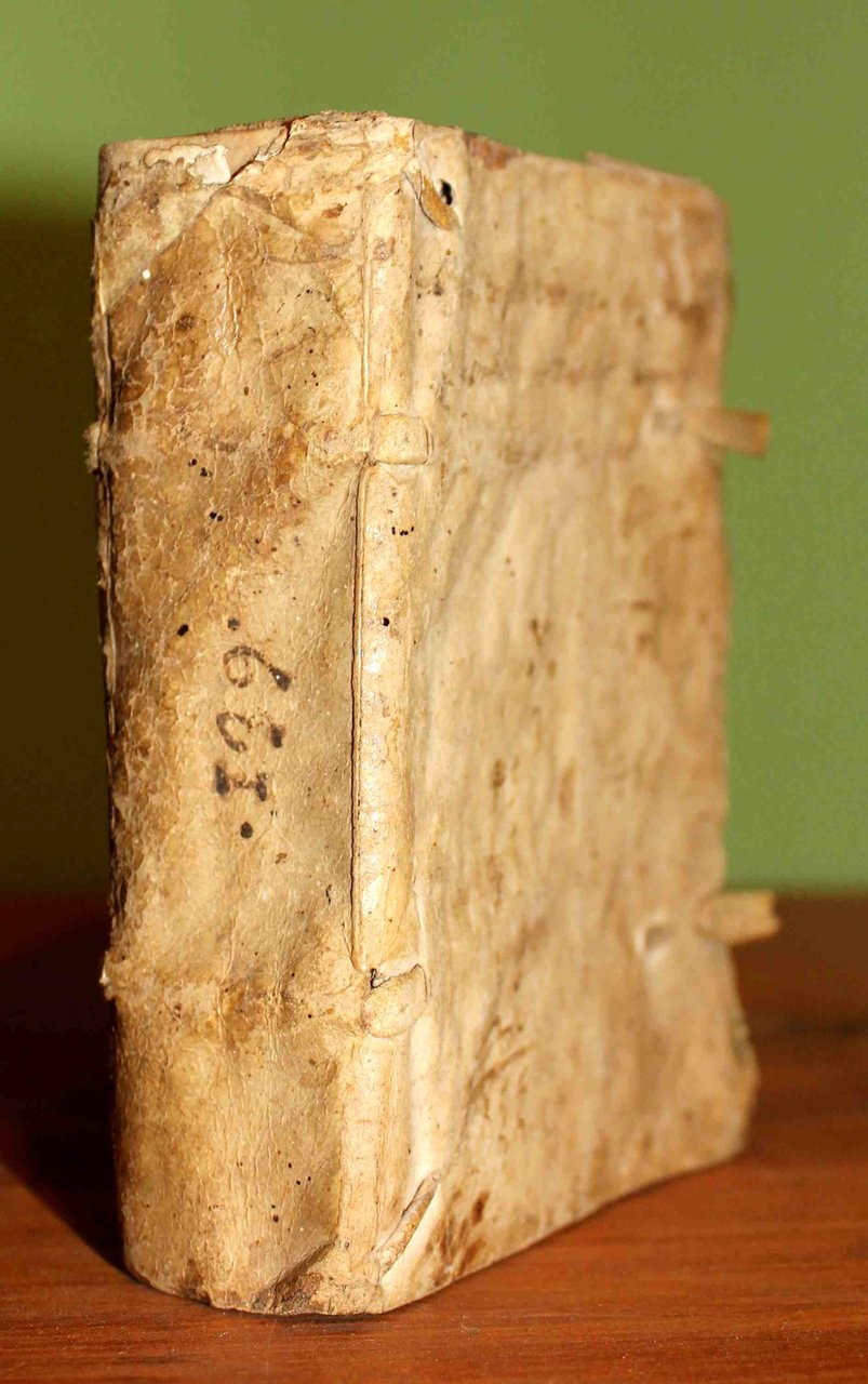 In 24° (mm. 110 x 80) cc. 319, (1). Leg. pergamena floscia dell’epoca. Marca tipografica incisa sul frontespizio e sul verso dell’ultima carta. Celebre trattato, più volte ristampato, che elenca commenta vizi e virtù della natura umana. Nicolas de Hanappes (1225 - 1291), celebre autore di trattati spirituali, fu l’ultimo patriarca latino di Gerusalemme. Morì il 18 maggio 1291 al largo di San Giovanni d’Acri.
