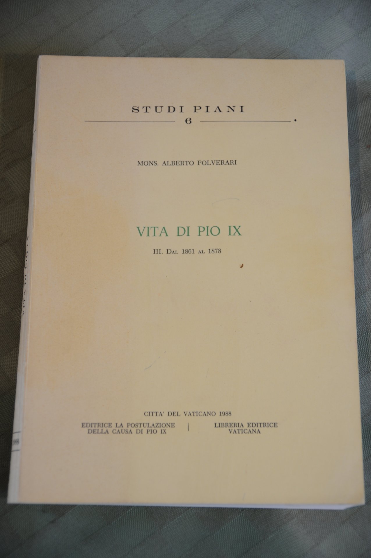 alberto polverari vita di pio ix III dal 1861 al 1878 (sottolineature a matita). .