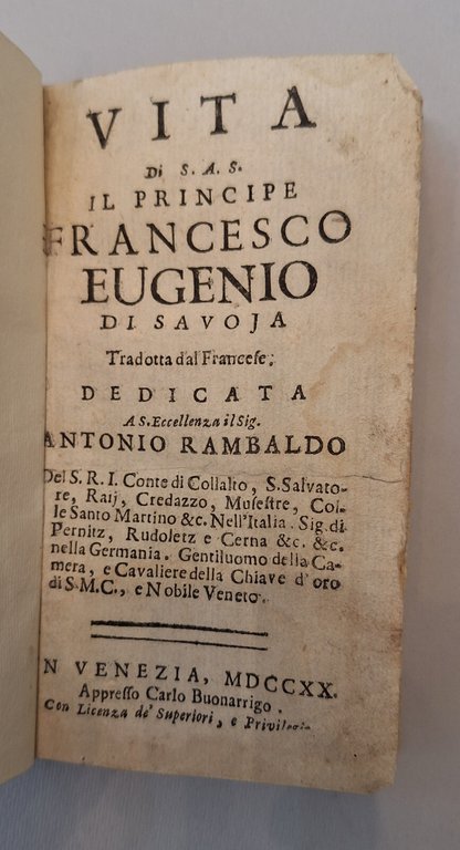 VITA DI S.A.S. IL PRINCIPE EUGENIO DI SAVOJA APPRESSO CARLO BUONARRIGO 1720