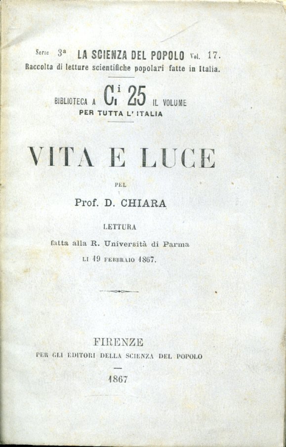 Vita e luce. Lettura fatta alla R. Università di Parma li 19 febbraio 1867
