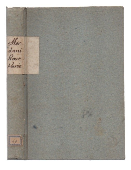- cartonato coevo carta da zucchero, al dorso tassello in carta con titoli manoscritti e etichetta di biblioteca estinta