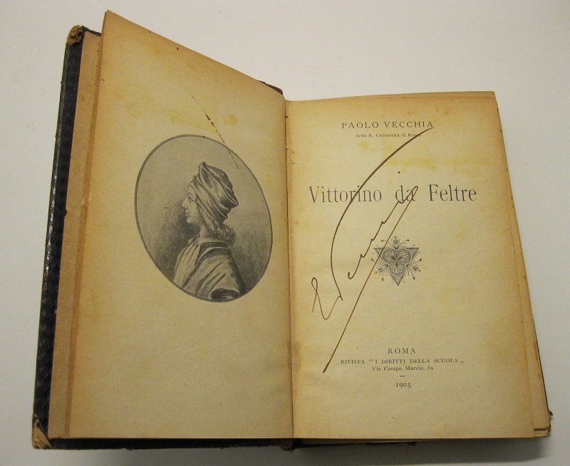 3 voll. legati in uno in 16, pp. 126; 127; 127. Con ritratti di Vittorino da Feltre, Francesco Rabelais, Michele Montaigne. Firma di propr. al f. Lievi danni al d. e ai bordi dei piatti. M. pl. coeva con fr. in oro al d.