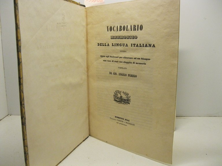 Vocabolario mnemonico della lingua italiana ovvero ajuto agli scriventi per ritrovare ad un bisogno una voce di raro uso sfuggita di memoria compilato da Gio. Angelo Perego.