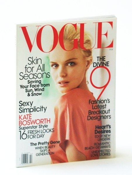 • Vogue (American) Magazine, February (Feb.) 2008 - Kate Bodsworth Cover Skin for all seasons, Kate Bosworth, When beauty skips a generation, The divine 9 - fashion's latest breakout designers, Edgy new lingerie, Romantic beach getaways, Unexpected love stories, Magazine Back Issues Photography Fashion