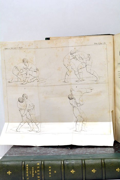 2 volumes. 1). frontispice gravé dépliant + VIII + 656 pages 2). 4 pages non chiffrées + 596 pages (19x22cm). Demi-Reliure ancienne Cuir. Bon état de la reliure. Quelques rousseurs. Frontispice gravé dépliant représentant plusieurs passes de lutte entre 2 jeunes hommes. Exemplaire en très bon état.