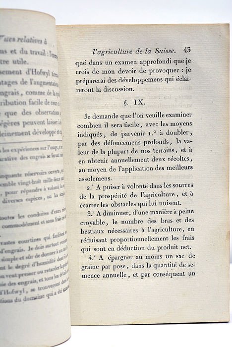 2 feuillets. XVI. 138 pages. (20x13 Cm). Broché. Couverture postérieure. Edition Française donnée à la demande de l'auteur par Charles Pictet. Le célèbre philanthrope, fondateur des établissements de Hofwyl, expose dans cet ouvrage ses vues sur l'économie rurale de la Suisse et ses efforts pour contribuer à son perfectionnement, appliqués dans le célèbre établissement d'Hofwyl. Mouillures angulaires.