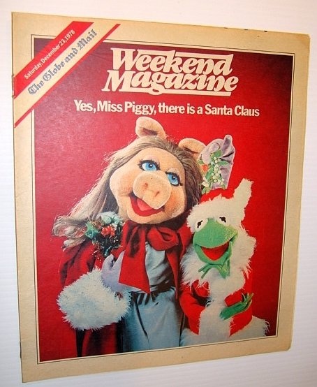 - Weekend Magazine, December 23, 1978 (Canadian Newspaper Supplement) - Miss Piggy and Kermit the, Frog Cover Photo Jim Henson Muppets Canadians live in the town, where they were born, The Muppets - article with colour photos of Miss Piggy, Kermit, Gonzo, Fozzie Bear, Rowlf, Scooter, Waldorf and Statler, Job description of Father Fred Olds of Winnipeg's Blessed, Sacrament Church - photo and article, Three pages of photos and brief bios of notable people who dies, in 1978 - including Will Geer, Robert Shaw, Garfield Weston, Bob Crane, and dozens more, Christmas Chestnuts - tracing the history of 11 yuletide, standards including The Nutcracker, The Christmas Carol, How the Grinch Stole Christmas, Gift ot the Magi, etc., A Day in the life of Santa Claus, Bethlehem - since the six day war it has become a city of, shopping centres and souvenir shops and a mecca for busloads of, tourists, Christmas recipes by Margo Oliver Canadiana Magazine Back Issues