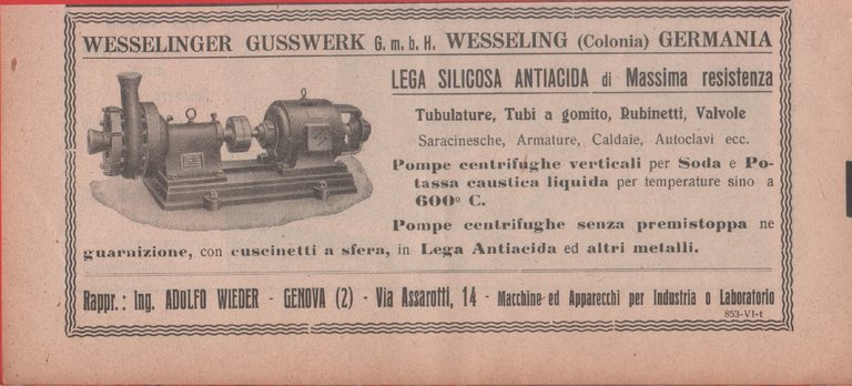 Wesserlinger Gusswerk. Lega silicosa antiacida. Advertising 1926