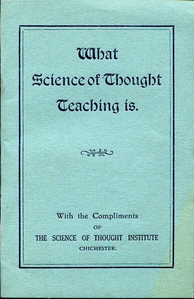 No marks or inscriptions to contents. No creasing to covers. A very clean very tight copy with bright unmarked boards, minor mark to rear and no bumping to corners. 43pp. The religious philosophy of the Science of Thought Institute. Very scarce.