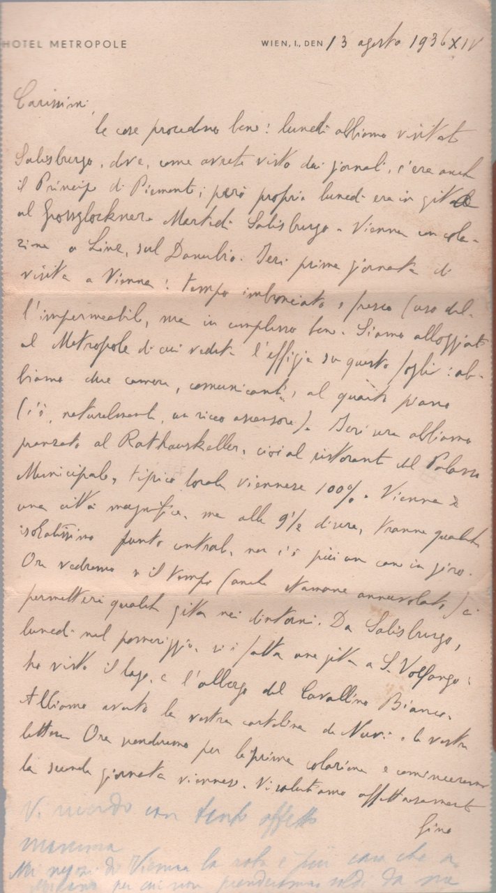Wien. Hotel Metropole. Carta da lettera/cartolina. Viaggiata 1936