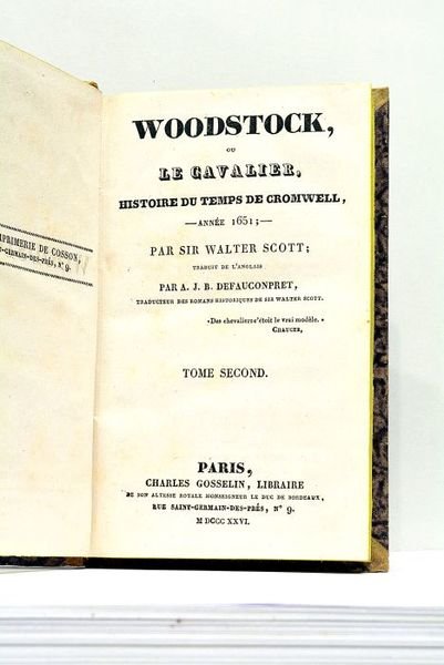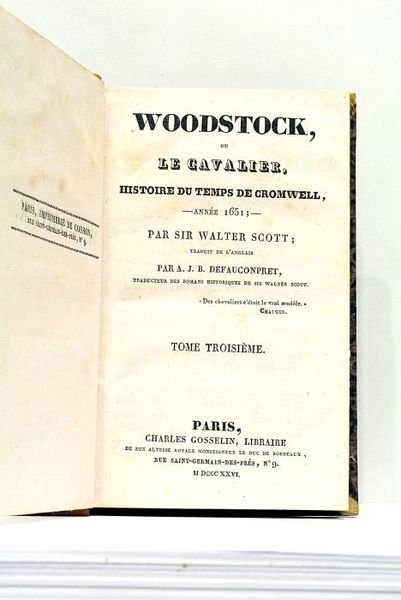 Woodstock, ou le Cavalier, Histoire du temps de Cromwell, - année 1651; -traduit de l'anglais par A.J.B. Defauconpret, traducteur des romans historiques de Walter Scott.