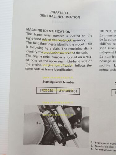 Yamaha SR 250 SE 3Y8 1980 manuale officina originale