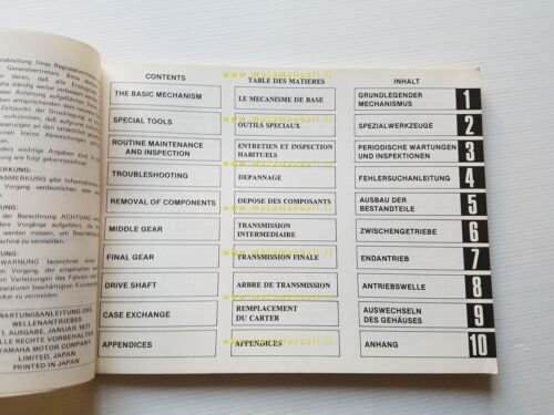 Yamaha tutti modelli 1977 cardano-albero trasmissione manuale officina originale