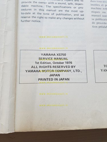 Yamaha XS 750 1T5 1976 manuale officina originale
