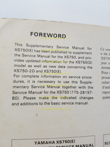 Yamaha XS 750 E 2F9 AGGIORNAMENTO 1977 manuale officina originale