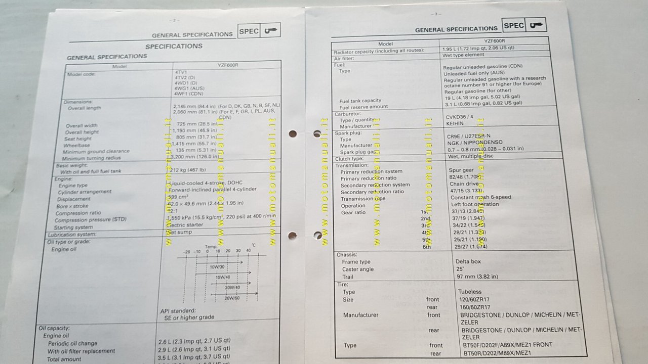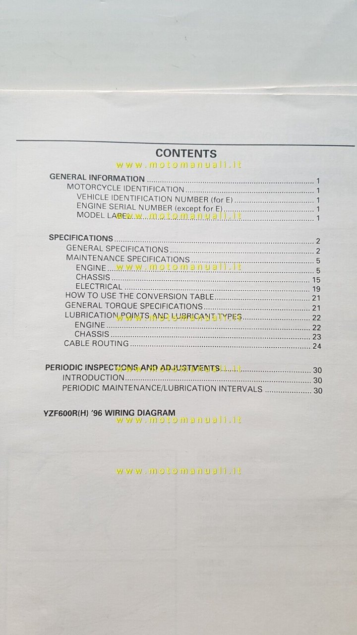 Yamaha YZF 600 R 1996-97 Service Information manuale officina INGLESE originale