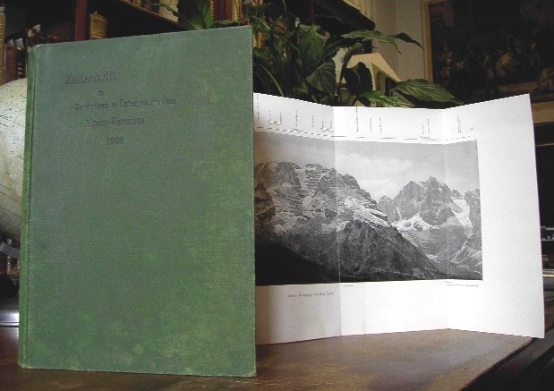 Volume in 4 grande (cm. 26 x 19), legato in tela, titolo al piatto ed al dorso, sguardie decorate con disegni della Stella Alpina, occhiello, tavola fotografica in antiporta, frontespizio, carta d'indici, VIII, 396 pp., 27 tavole ft., di cui alcune colorate ed una grande veduta pi volte ripiegata (Gruppo del Brenta visto da Monte Spinale), pi 111 illustrazioni nel testo. Sono riportate scalate, escursioni, prime ascensioni narrate dagli stessi esecutori. Diverse escursioni riguardano le Alpi ed in particolare il Bergamasco ed il Trentino. Non comune. Bellissima l'iconografia. Volume in pi che belle condizioni.