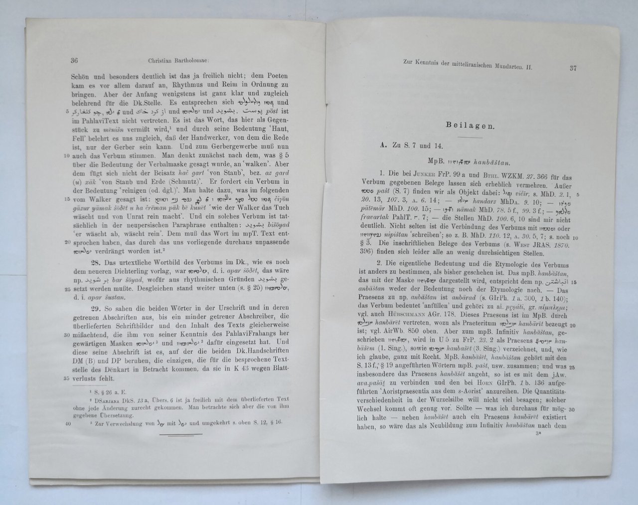ZUR KENNTNIS DER MITTELIRANISCHEN MUNDARTEN II (Sulla conoscenza dei dialetti iraniani centrali) di Christian Bartholomae.