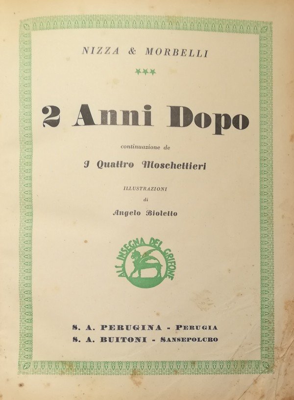 2 ANNI DOPO continuazione de I QUATTRO MOSCHETTIERI | Libri antichi e moderni | NIZZA & MORBELLI, ,NIZZA & MORBELLI