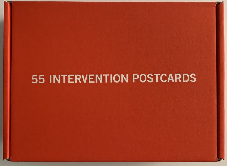 Scatola con foglietto di istruzioni e 55 cartoline . Cm 10,5x148. pp. 55. . Ottimo (Fine). . Prima edizione di 500 esemplari (First edition of 500 copies). . Lo scopo di un intervento è trasformare la vita di una persona in modo che smetta di comportarsi in modo dannoso e/o autodistruttivo. Il paziente potrebbe non essere consapevole di ciò che sta facendo, oppure potrebbe fingere a se stesso che le cose siano diverse da come sono. Un intervento di successo consiste nel presentare loro la realtà in modo tale che possano recepirla e, naturalmente, avviare il cambiamento.