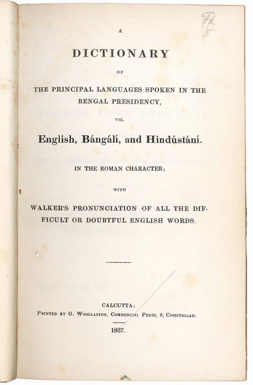 A Dictionary of the Principal Languages Spoken in the Bengal Presidency: Viz. English, Bángálí, and Hindústání; In the Roman Character; With Walker's Pronunciation of All the Difficult or Doubtful English Words