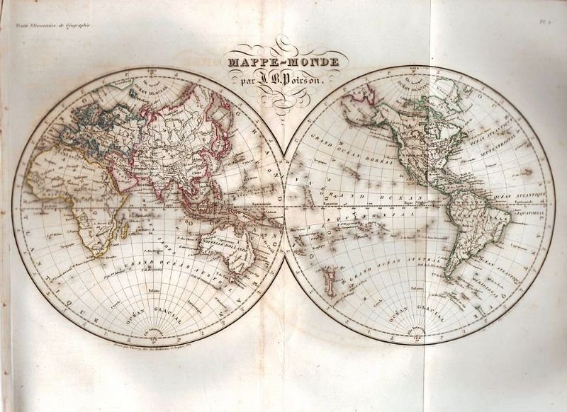 In-8° grande, leg. coeva in mezza pergamena con tit. in oro su tassello al dorso, pp. XIV(2)-1043(1). Con 12 carte geografiche ripiegate, e 25 incisioni in rame di vedute delle principali città descritte. L'opera è preceduta da una storia della geografia e delle scoperte dei principali viaggiatori a cura di Larenaudière. Seconda edizione interamente rivista e corretta. Marginali tracce d'uso alla legatura, leggere fioriture sparse. Buon esemplare.