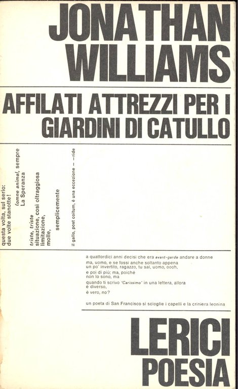 Affilati attrezzi per i giardini di Catullo | Libri antichi e moderni | WILLIAMS, Jonathan (Asheville 1929-2008),