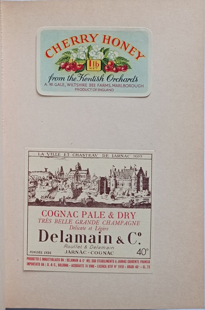 In 8, p. 212, con numerose etichette originali di cibi e bevande applicate su tavole f.t.; leg. edit. con sovracoperta trasparente.