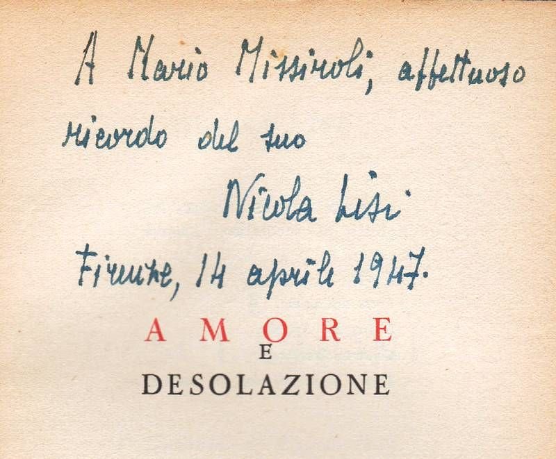 Amore e desolazione. | Libri antichi e moderni | Lisi Nicola.