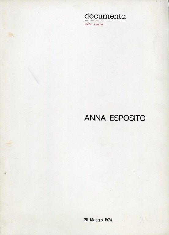 Catalogo della mostra tenutasi presso Documenta - Palazzo Villanis, Torino 25 maggio 1974. Testo di Luigi Carluccio. Illustrazioni in bianco e nero. Catalogo delle opere esposte e cenni biografici . 8vo. pp. 24. . Molto buono (Very Good). . . .