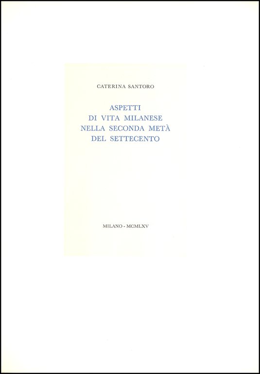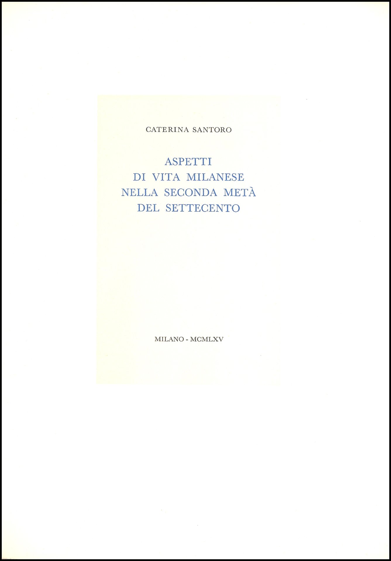 Aspetti di vita milanese nella seconda metà del Settecento | Libri antichi e moderni | SANTORO, Caterina,