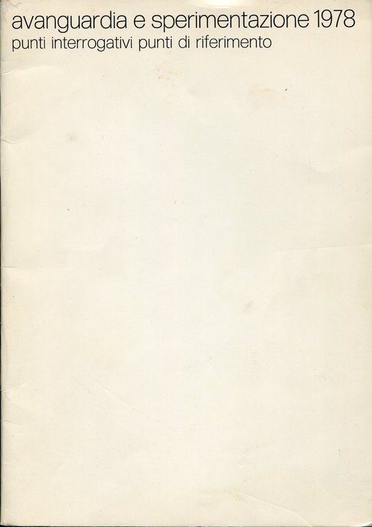 Avanguardia e sperimentazione 1978. Punti interrogativi Punti di riferimento